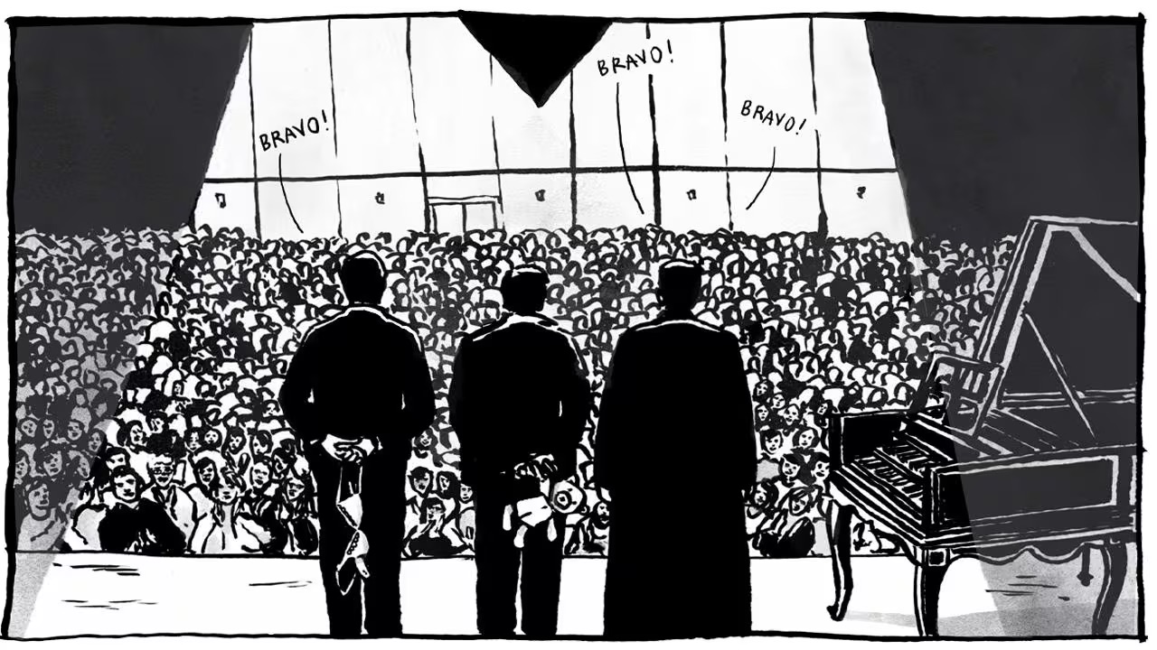 La destitution de l’état clérical n’a pas suffi à pousser l’organisation du festival à prendre ses distances avec Benoît Peltereau-Villeneuve. Il a par exemple été vu lors du concert organisé par Agapé le 21 mars 2024 à l’Arena Genève, pour une version de la Passion selon saint Jean de Bach donnée par Jordi Savall, le grand maître de la viole de gambe qui, selon nos informations, est l’un de ses proches amis. Serrant les mains du public en amont du concert, Benoît Peltereau-Villeneuve ne semble pas être un spectateur parmi d’autres ce soir-là, selon nos sources. De plus, Le Temps a pu consulter une photo prise lors de cette même soirée, où il porte une tenue qui s’apparente à l’habit religieux, chose qui lui a été interdite par le Vatican. Il semble que la couleur grise réglementaire ait été légèrement modifiée en bleue.